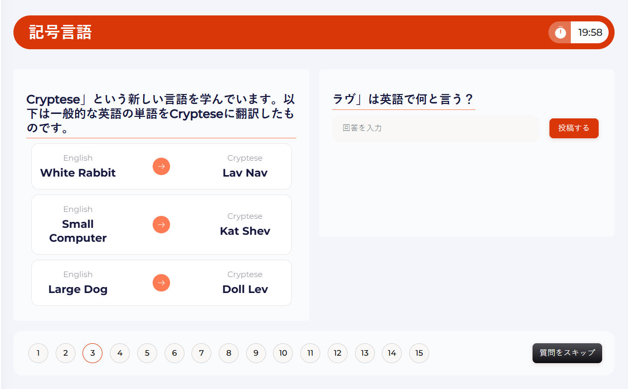 記号言語の問題では、物体、概念、またはアイデア間の関係を表すために記号を使用します。異なる、重複する記号の「辞書」の複数の列から翻訳語を特定してみてください。