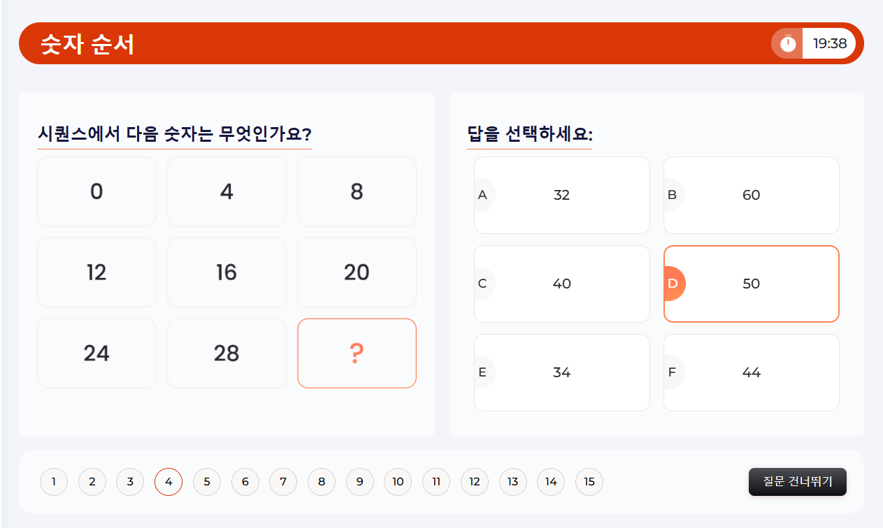숫자 시퀀스 문제에 참여하여 숫자 시퀀스에서 패턴을 식별하고 예측하는 능력을 테스트하세요. 이 과제에는 빠진 숫자 찾기, 시퀀스에서 다음 숫자 찾기, 기본 규칙 파악이 포함될 수 있습니다.